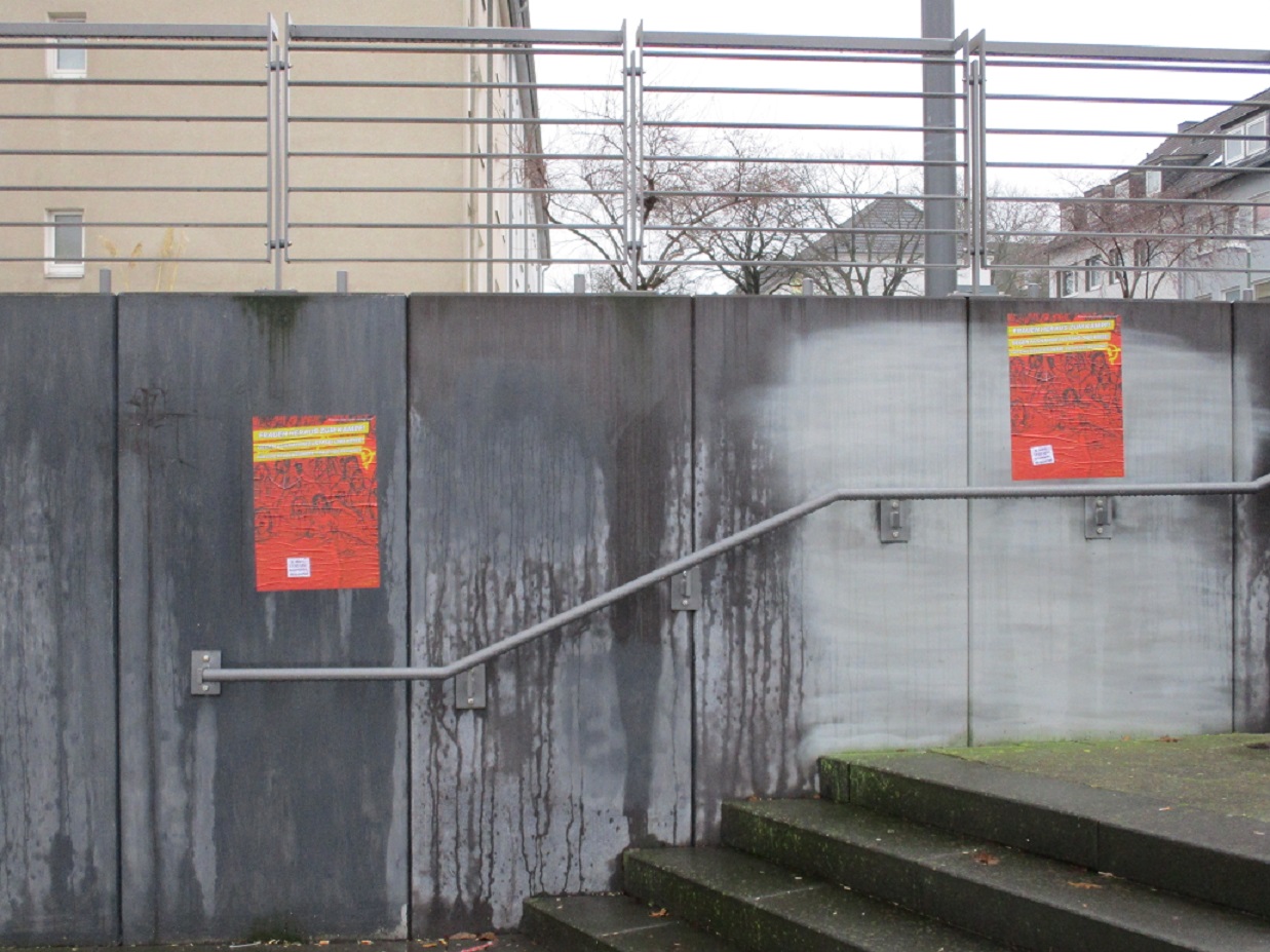 Im Rahmen des 8. März und der Mobilisierung dazu wurden uns Bilder von verklebten Plakaten aus dem Arbeiterstadteil Essen-Altendorf zugesandt.