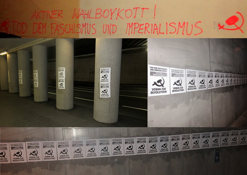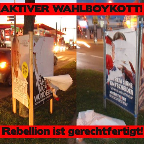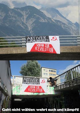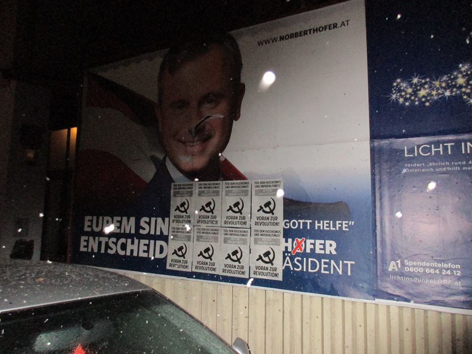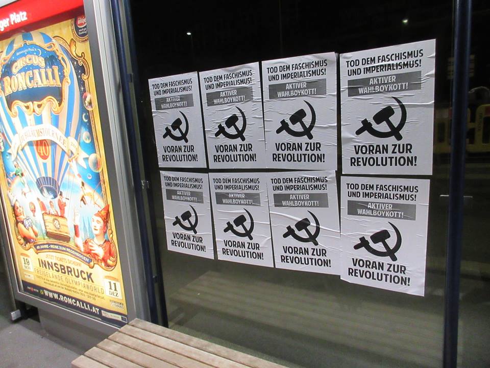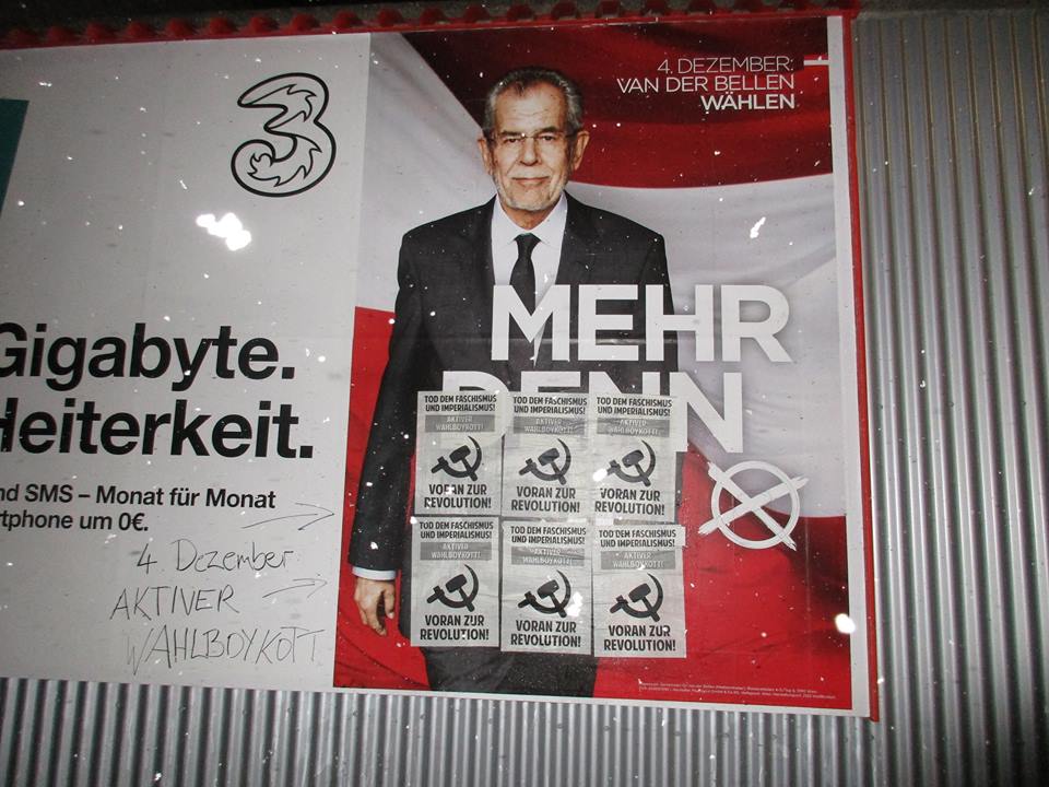 Anlässlich der Präsidentschaftswahlen am 4.Dezember in Österreich führten die fortschrittlichen und revolutionären Kräfte eine Kampagne zum Aktiven Wahlboykott durch, die in verschiedenen Bundesländern verbreitet wurde. Wir wollen einige Bilder von Aktionen dazu hier veröffentlichen.