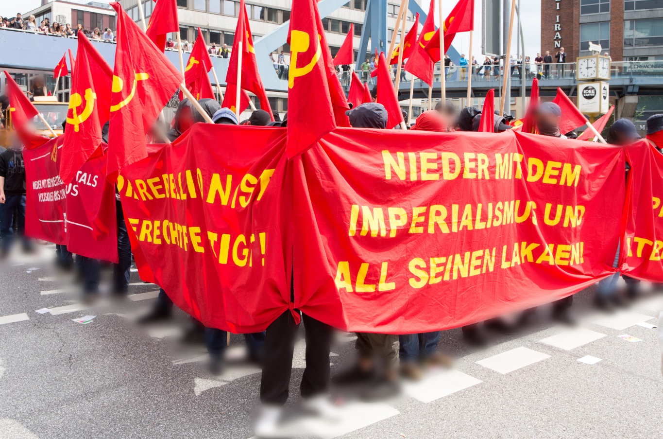 Auf der Großdemonstration am Samstag wurde zusammen mit dem Hamburger Bündnis gegen imperialistische Aggression ein Antiimperialistischer Block organisiert, der mit einem kämpferischen Frontblock, in dem die rote Fahne mit Hammer und Sichel in großer Zahl wehte auftrat. Er umfasste Genossen aus verschiedensten Ländern Europas. Den Ausdruck des Blocks nahm auch die bürgerliche Presse auf, so wie der stellvertretende Chefredakteur des Hamburger Abendblatts es ausdrückte: „So viele Hammer-und-Sichel-Fahnen hatte man seit dem Mauerfall nicht mehr gesehen.“ (siehe Hamburger Abendblatt, „Die Schwarzen und die Linken“ vom 10. Juli 2017) Aus den Massen des Antiimperialistischen Blocks heraus agierten auch Propagandatrupps, die Flugblätter verteilten, Aufkleber verklebten und die Wände mit Parolen des Blocks versahen. In diesem Block stellten sich Genossen aus diversen und ganz unterschiedlichen Organisationen Seite an Seite und wehrten sich gegen den massiven und vorbereiteten Angriff der Polizei. Diesen Kampfgeist hat der Polizei genug imponiert, dass sie dafür eine eigene Pressemitteilung verfasste: „Es wurden bei Teilnehmern vereinzelte Vermummungen festgestellt. Aus dieser Gruppe heraus wurden weitere Straftaten begangen, so dass im Bereich Herrengraben Polizeieinsatzkräfte gegen 15:15 Uhr eine etwa 120 Personen umfassende Gruppe aus dem Demonstrationszug separieren wollte. Die Beamten wurden dabei massiv getreten und mit Fahnenstangen geschlagen. Die vermummten Teilnehmer des Aufzuges konnten in alle Richtungen unerkannt flüchten.“ (Pressemitteilung der Polizei, „Versammlungen am 08.07.2017 in Hamburg - Ergänzung Stand 16:40 Uhr“) Auch die bürgerlichen Zeitungen berichten wiederholt von massiven Angriffen auf die Polizei mit (Fahnen-)Stangen. Bei dem schäbigen Angriff der Reaktion wurden zwei Genossen so schwer verletzt, dass diese unmittelbar ins Krankenhaus gebracht werden mussten. Aber uns wurde auch berichtet, dass die Bullen ihren Hinterhalt nicht durchführen konnten ohne einen eigenen gewissen Blutzoll zu zahlen. Nach dem Angriff erhoben Genossen des Antiimperialistischen Blocks die zuvor nicht in den ersten Reihen gestanden hatten, mit revolutionärem Geist in einer großen Zahl erneut die rote Fahne mit Hammer und Sichel und reorganisierten den Frontblock, um die Demonstration kämpferisch zu beenden. Wir hoffen, dass die Genossen aus anderen Ländern die hier nicht die Gelegenheit genutzt haben mit den Genossen des Blocks Seite an Seite zu kämpfen eine gute Erinnerung an diesen Tag mit nachhause nehmen konnten. Wir bedanken uns auch für die Solidarität, die unterschiedliche Genossen uns nach dem Angriff der Polizei entgegen gebracht haben, möchten aber klar stellen, dass wir keine wehrlosen Opfer waren, sondern dass alle Genossen mit einem klaren Bewusstsein in diesem Kampf standen.
