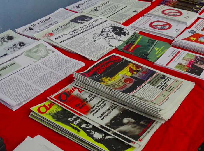 Eine Rednerin die eine AktivistInnengruppe der Antifaschistischen Aktion Wien vertrat, machte in ihrem lebendigen und kämpferischen Beitrag deutlich, wie wichtig der Zusammenhalt der AktivistInnen aus den unterschiedlichen Kontinenten für den gemeinsamen Kampf gegen den Imperialismus ist. Ebenso betonte sie, dass wir keine Illusionen haben dürfen, auch nicht in das scheinbar „freundliche“ Gesicht der EU, deren Imperialisten ihren Einfluss in Afrika mit Entwicklungshilfe und Blauhelmen durchzuboxen versuchen, aber auch oft mit jeweils eigenen Militärmissionen.