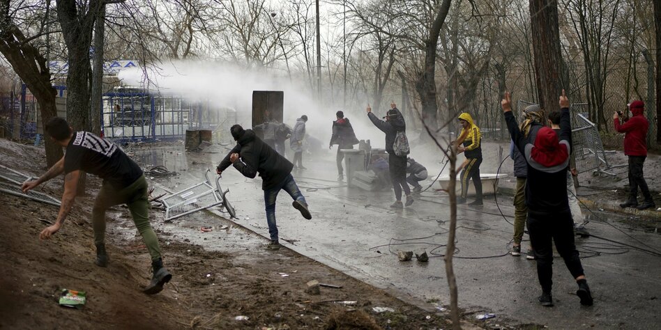 Die taz fasst es so zusammen: „Die griechische Polizei hat am Wochenende mit Wasserwerfern und Tränengas Menschen am Grenzübertritt aus der Türkei gehindert. Am Samstag seien etwa 10.000, am Sonntag weitere 5.500 Menschen gestoppt worden. Vor allem am Grenzübergang Pazarkule drängte die Polizei die Menschen, unter ihnen viele Kinder, gewaltsam zurück. 140 Menschen seien festgenommen worden.