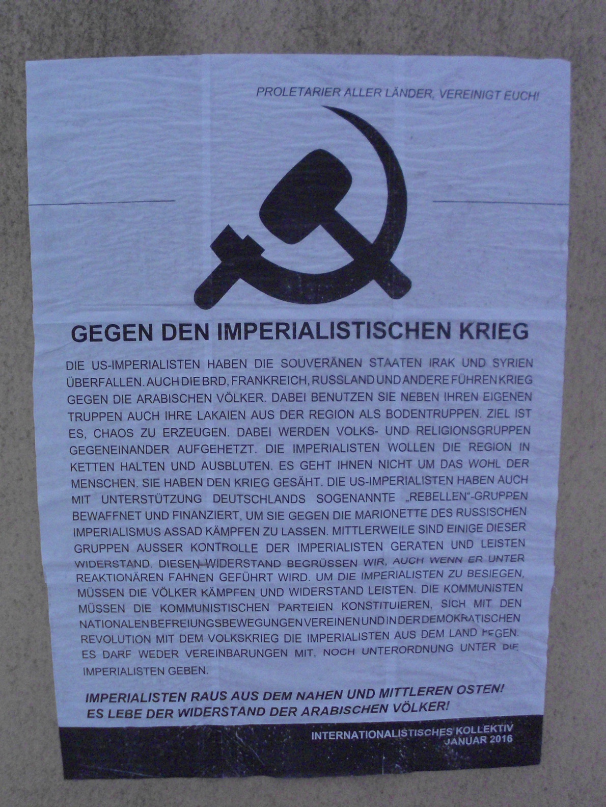 Wir haben folgende Bilder von Dazibaos (Wandzeitungen), die den Krieg der Imperialisten gegen das arabische Volk denunzieren, von Freunden aus Berlin zugeschickt bekommen: