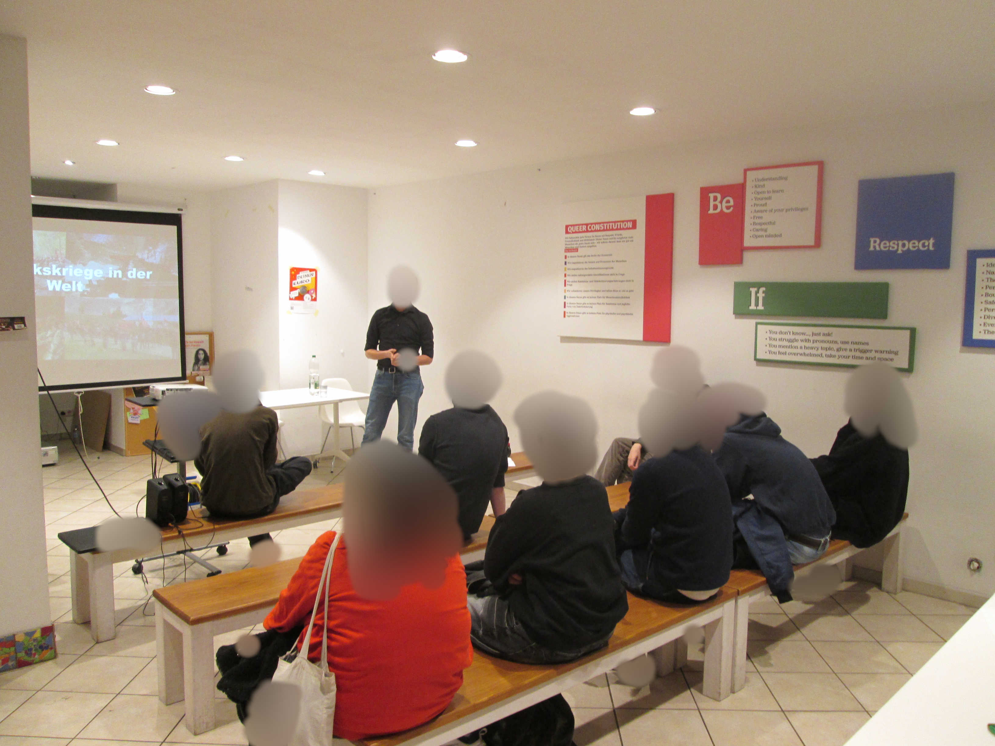 „Am 29.11. haben wir unsere erste Veranstaltung als Roter Bund Köln im „Demokratie Space“ mitten in Köln-Kalk durchgeführt. Im Vortrag haben wir unsere Haltung zu den antiimperialistischen Kämpfen dargelegt und besonders die Rolle hervorgehoben, welche die Volkskriege in der Welt spielen, da durch sie – unter der Führung der Kommunistischen Parteien - die neudemokratische Revolution in den jeweiligen Ländern durchgeführt wird. Um dies Anhang von konkreten Beispielen zu diskutieren, haben wir u.a. Video-Auschnitte aus dem Film „Red Ant Dream“, welches Szenen vom Volkskrieg in Indien beinhaltet, „You must tell the world“ und aus den aktuellen Kämpfen in Brasilien gezeigt. Wir freuen uns über die gelungene Auftaktveranstaltung und auf die vielen Weiteren, die noch folgen werden.“