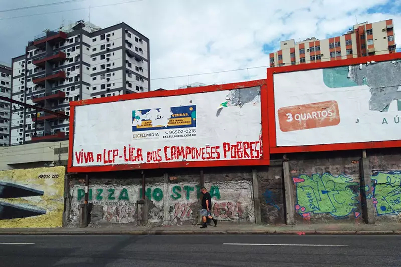 In Solidarität mit der Liga dos Camponeses Pobres - LCP (Liga der armen Bauern) und den anhaltenden und sich verstärkenden Repressionen und Kriminalisierung tauchten in ganz Brasilien Malungen mit Solidaritätsbekundungen auf.