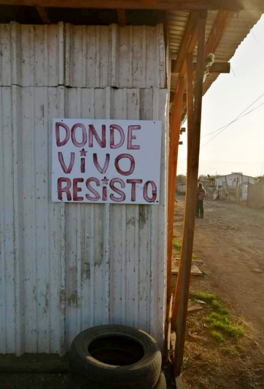 "Donde vivo resisto" (Wo ich lebe, leiste ich Widerstand), Slogan auf der Toma 17 de Mayo in Cerro Navia. Bild aus der Boulevardpresse "La Reineta".