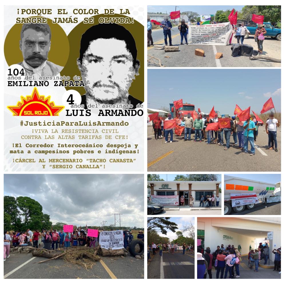 Am kommenden 10. April jährt sich die Ermordung von General Emiliano Zapata zum 104. Mal, und wie die bäuerliche und indigene Bewegung mehr als einmal erklärt hat: das Programm der Agrarrevolution ist immer noch gültig! Zum Gedenken haben verschiedene Agrarbewegungen in verschiedenen Teilen des Landes zu Mobilisierungen aufgerufen, von denen einige einen klaren Klasseninhalt haben und sich gegen die Militarisierung des Landes und die Auferlegung von imperialistischen Megaprojekten der Enteignung und des Todes richten. Am Isthmus von Tehuantepec rufen die Union der indigenen Gemeinden der nördlichen Zone der Landenge (UCIZONI) und das Komitee zur Verteidigung des Landes der Volksströmung der Roten Sonne (CP-Sol Rojo) zu Mobilisierungen auf, die die Besetzung von Büros, die Blockade von Autobahnen und einige Märsche in verschiedenen Teilen der Region umfassen. Diesen Protesten werden sich andere Organisationen und Gemeinden anschließen, die sich am Netzwerk des zivilen Widerstands gegen die hohen Tarife der CFE beteiligen, sowie Gemeinden, die weiterhin Widerstand gegen die Windparks und andere, die derzeit vom Interozeanischen Korridor betroffen sind, leisten. Die einberufenden Organisationen und Gemeinden bringen ihre Solidarität mit den Gemeinden Mogoñé Viejo, San Juan Guichicovi sowie Santa Cruz Tagolaba und Rincón Tagolaba, Tehuantepec, zum Ausdruck, die von der mexikanischen Marine und paramilitärischen Gruppen belagert werden. Außerdem fordern die Demonstranten Gerechtigkeit für Luis Armando Fuentes Aquino, von Fischern und armen Bauern liebevoll „Comandante Gato" genannt, der am 11. April 2019 in San Francisco Ixhuatán von Paramilitärs getötet wurde.