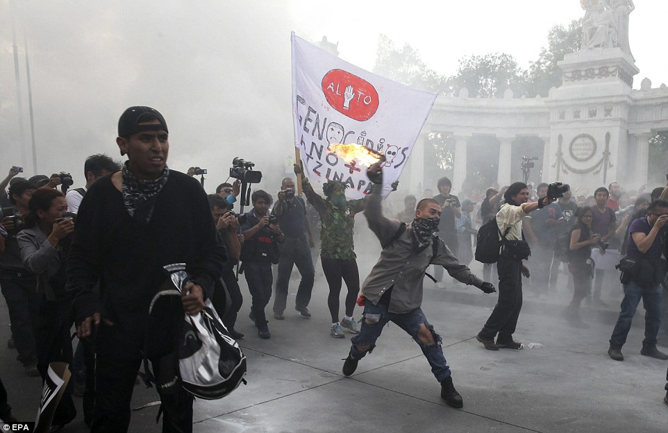 Während der Demonstration wurde dazu aufgerufen, die Wahlen, die am 7. Juni stattfinden sollen, nicht nur im Staat Guerrero, sondern im ganzen Land zu verhindern. Im Sinne dessen wurde am Ende der Demonstration ein Berg von Wahlpropaganda, das von den verschiedenen Kontingenten eingesammelt wurde, in Brand gesetzt. Als die Bullen versuchten, das Feuer zu löschen, kam es zu Auseinandersetzungen, bei denen die Feuerlöscher gegen Demonstranten eingesetzt wurden, sie selber wurden unter anderem mit Molotowcocktails angegriffen.