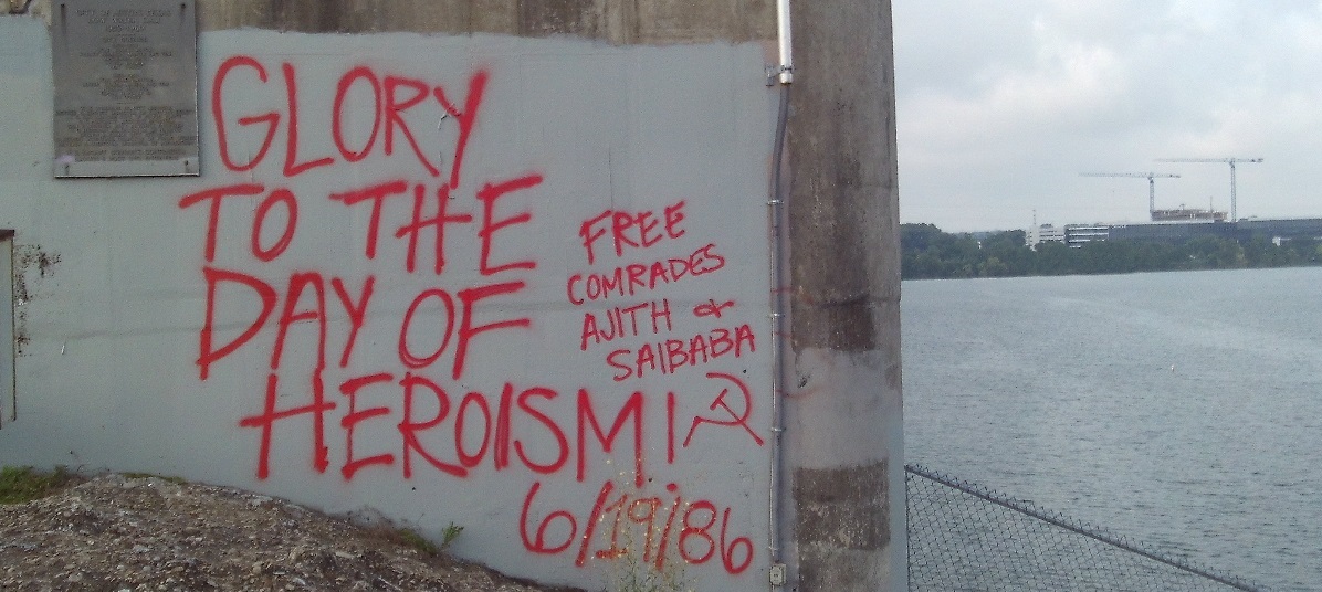 Anlässlich des 19. Junis haben Genossen in den USA verschiedentlich Aktionen durchgeführt um an die heldenhaft kämpfenden Kriegsgefangenen zu erinnern, die am 19. Juni `86 von der peruanischen Reaktion ermordet wurden, und um ihre Solidarität mit inhaftierten Militanten weltweit, wie Genosse Ajith, und eingesperrten politischen Aktivisten, wie G.N. Saibaba, zum Ausdruck zu bringen.