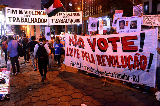 Am 26.10. findet die Stichwahl der Präsidentschaftskandidaten in Brasilien statt, in der sich die aktuelle Präsidentin Rousseff und ihr Gegenkandidat Neves gegenüberstehen werden. Der kommende Sonntag wird aber nicht nur die Wahl eines neuen Anhängsels der herrschenden Elite zum Präsidenten mit sich bringen, sondern auch einen weiteren wichtigen Schritt in der Entwicklung des Kampfes in Brasilien darstellen. Denn soviel steht bereits jetzt fest: Die Wahlboykottkampagne zur Entlarvung der reaktionären Regierung und ihrer Wahlfarce und für die Stärkung der wahrhaft fortschrittlichen Kräfte hat bereits große Erfolge erzielt und weite Teile des Landes und der Menschen in seinen Bann gezogen. Bei der zentralen Wahl die am 5. Oktober stattgefunden hat (und Grundlage der kommenden Stichwahl ist), haben 38.797.556 Menschen ungültig gewählt, leere Wahlzettel abgegeben oder sich nicht an der Wahl beteiligt. In vier Bundesstaaten hat der Boykott die Anzahl an Stimmen für die gewählten Kandidaten übertroffen. So etwa in Rio de Janeiro: Hier erhielt der BDMP Kandidat Pezão, mit 3.242.513 die meisten Stimmen, doch ihm gegenüber stehen 4.142.231 Stimmen des Volkes, die sich nicht für die Wahlfarce haben gewinnen lassen. Diese Ergebnisse sind umso beeindruckender, da in Brasilien Wahlpflicht besteht und das unbegründete Fernbleiben von der Wahl zu schwerwiegenden Konsequenzen führen kann. Wir begrüßen daher den Mut des brasilianischen Volkes sich der inszenierten Farce aktiv zu entziehen und aufbauend auf die Erfahrungen der Boykottkampagne den Kampf gegen die herrschenden Klassen voran zu treiben. Der 26.10. wird die Fortschritte in dieser Arbeit ein weiteres mal darlegen.