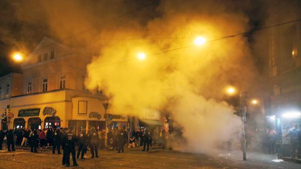 Die Bremer Polizei war nicht in der Lage dazu, die Situation unter Kontrolle zu bringen und zog ihre Kräfte aus dem Bereich der Sielwallkreuzung restlos ab. In dieser Zeit gab es weitere Einsätze von Pyrotechnik, neue Feuerbarrikaden wurden an möglichen Zufahrtswegen gelegt, ein Feuerlöscher wurde entleert und das Fußballspiel nahm weiter seinen Lauf. Währenddessen positionierte die Bremer Polizei Kräfte in mehreren Seitenstraßen und blockierte Zufahrtswege einige Hundert Meter vor der Sielwallkreuzung. Etwa gegen 2 Uhr, ganze zwei Stunden nachdem die Polizei wieder abgezogen war, rückten die Bullen langsam wieder an und bereiteten sich darauf vor die Kreuzung zu räumen. Dies geschah dann auch, indem die Polizei auf die Kreuzung stürmte und die Menschen gewaltsam auf die Bürgersteige drängte. Hierbei wurde eine junge Frau von mehreren Polizisten zu Boden geschlagen und misshandelt. Eine offensichtlich behinderte Person die auf Krücken angewiesen war wurde einfach brutal umgerannt. Außerdem gab an dieser Stelle Bedrohungen und rassistische, homophobe und patriarchale Beleidigungen durch die Polizei wie z.B. „du schwule Judenfotze“. Immer wieder rannten Personen auf die Kreuzung, leisteten Widerstand, warfen Flaschen und kämpften gegen die Bullen. Auch aus umliegenden Wohnungen flogen Gegenstände auf die Polizisten. Die Polizei besetzte die Kreuzung und versuchte die Lage unter ihre Kontrolle zu bringen, doch immer wieder flogen Flaschen und Parolen gegen die Polizei und dieses System wurden gerufen. Noch bis in die frühen Morgenstunden besetzte die Polizei die Kreuzung mit mehreren Mannschaftswagen. Insgesamt wurden neun Menschen festgenommen von denen vier auch am Sonntagabend noch einsaßen. Laut der Polizei waren rund 300 Menschen an den Geschehnissen im Viertel beteiligt. Zeitgleich zu den Vorfällen im Steintorviertel wurden mehrere Polizeireviere in den Stadtteilen Gröpelingen, Woltmershausen und der Innenstadt Angegriffen. Außerdem wurde eine Fensterscheibe am Bremer Rathaus zerstört. Am Sonntag sprach die Polizei von massiven Ausschreitungen die einen politischen Hintergrund haben sollen. Eine Ermittlungsgruppe beim Staatsschutz wurde eingerichtet. Der Bremer Polizei, die zusätzlich Unterstützung aus Niedersachsen bekommen hat ist es über mehrere Stunden nicht gelungen die Lage rund um die Sielwallkreuzung unter Kontrolle zu bringen. Ein Rückschlag für die Bullen und ein erfolgreicher Widerstand von Teilen der Massen im Bremer Steintorviertel und an den anderen Orten.