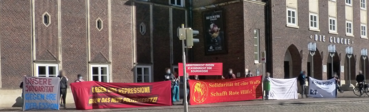 Am Freitag den 18. September wurde vormittags vor dem Bremer Landgericht eine Kundgebung in Solidarität mit der Roten Hilfe durchgeführt. Grund dafür war die an diesem Tag stattfindende Verhandlung in Folge einer Klage der Roten Hilfe dagegen, dass sie im Bremer Verfassungsschutzbericht als „gewaltorientiert“ bezeichnet werden. Damit versucht der deutsche Staat die Rote Hilfe, die ein wichtiges Bindeglied der revolutionären Bewegung in der BRD ist, zu delegitimieren und zu kriminalisieren. Schon vor gut zwei Jahren machte Bundesinnenminister Horst Seehofer einen Vorstoß in Richtung eines Verbots der Roten Hilfe. Ein Verbot der Roten Hilfe wäre ein weiterer Schlag gegen die revolutionäre Bewegung in der BRD, würde eine wichtige Organisation entreißen und für mehr Spaltung innerhalb der Bewegung sorgen. Was es weiterhin braucht ist eine breite Solidarität mit der Roten Hilfe, denn die zunehmenden Repressionen und Polizeistaatmethoden des deutschen Staates erfordern eine kräftige Antwort der revolutionären Bewegung.