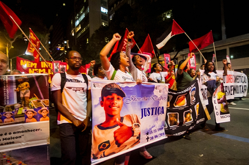 Hundreds of people have marched on the streets of Rio de Janeiro city center last August 14, for supporting the 23 activists who were recently sentenced to up to 13 years of prison, for the right of demonstration, against the military intervention, against the genocide of the poor and black people on the favelas and repudiating the political murder of Marielle Franco.