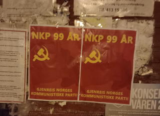 On November 4th revolutionary activists marked the 99th anniversary of the founding of the Communist Party of Norway, Before the markation posters were put up around Oslo with the slogans ”Long live Maoism! Down with revisionism!” and ”NKP 99 years – Reconstitute the Communist Party of Norway!”.