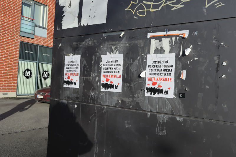 In Bergen activists from Kampkomiten put up a banner on Lotheveien in the area of Gyldenpris/Solheim Nord i Bergen. The municipality owned flats there have stayed empty for yours because the municipality of Bergen has not done proper maintainence work on them. The area makes up the poorest in Bergen. Banners were put up against the increasing rent and cuts in healthcare.