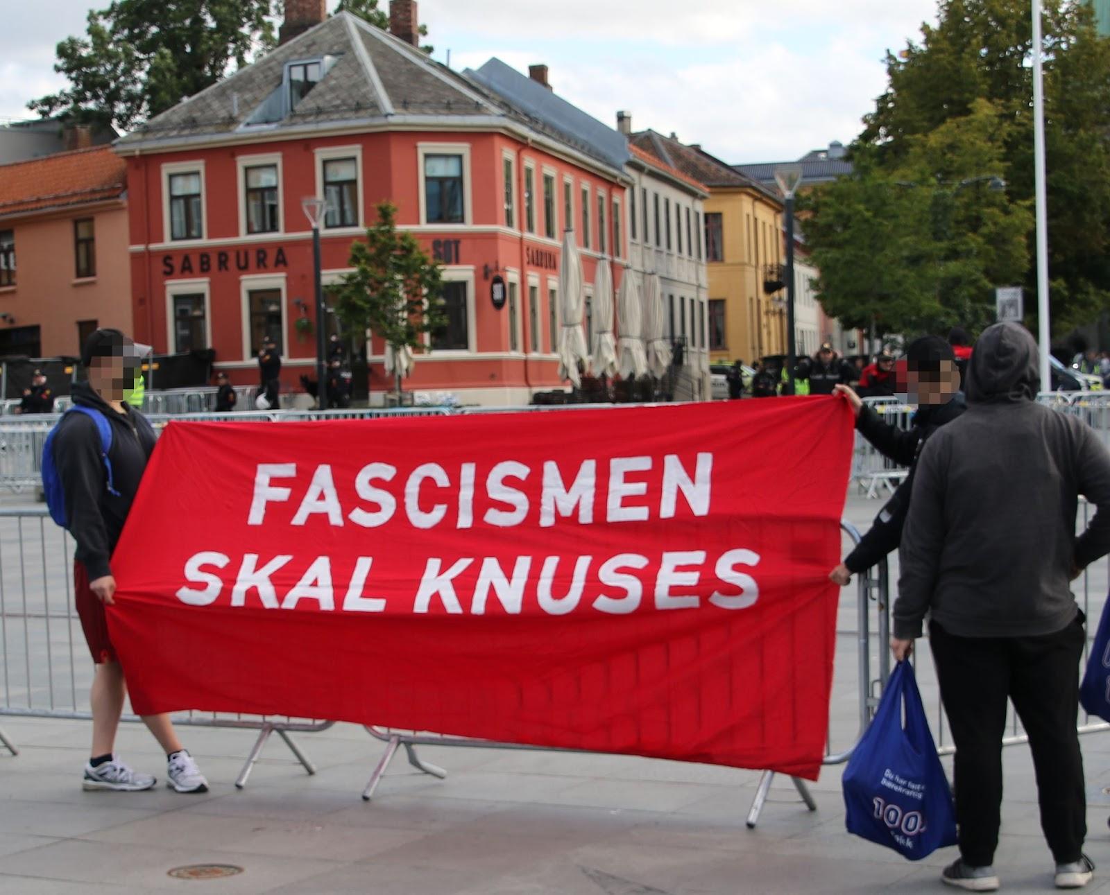 On Monday August 22nd in Trondheim Kampkomiteen partook in a demonstration against the fascist organisation SIAN. Before the demonstration activists from Kampkomiteen had put up posters in central and eastern Trondheim, to mobilise for the demonstration. Posters were also hung up in the neighbouring municipalities of Malvik and Stjørdal.
