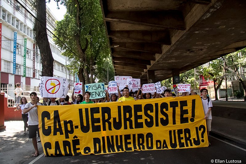 In the midst of many strikes and mobilizations, the University of th State of Rio de Janeiro (UERJ) passes trhough a deep crisis: lack of financial fundings and the policy of scrapping and failing – which became acute after the Fifa Cup feast in 2015 and the Olympic massacre afterwards – with many episodes of delay in payments to the administrative workers, outsourced and professors and also delays on the scientific initiation and assistance scholarships.