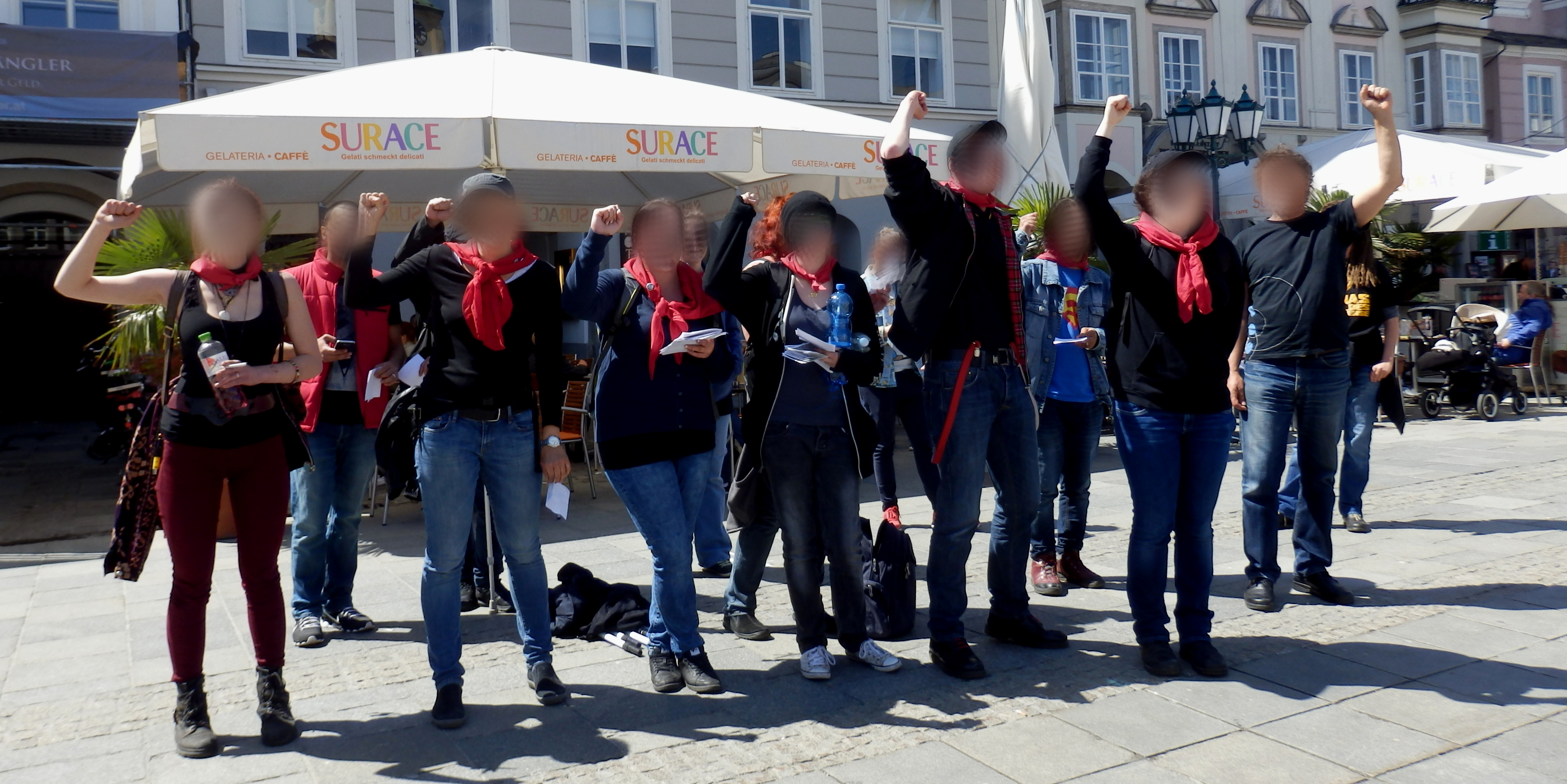 On the „Hauptplatz“ at the finishing rally revolutionary forces which marched under the banner „Put proletarian internationalism in the first place!“, started to sing „The international“.