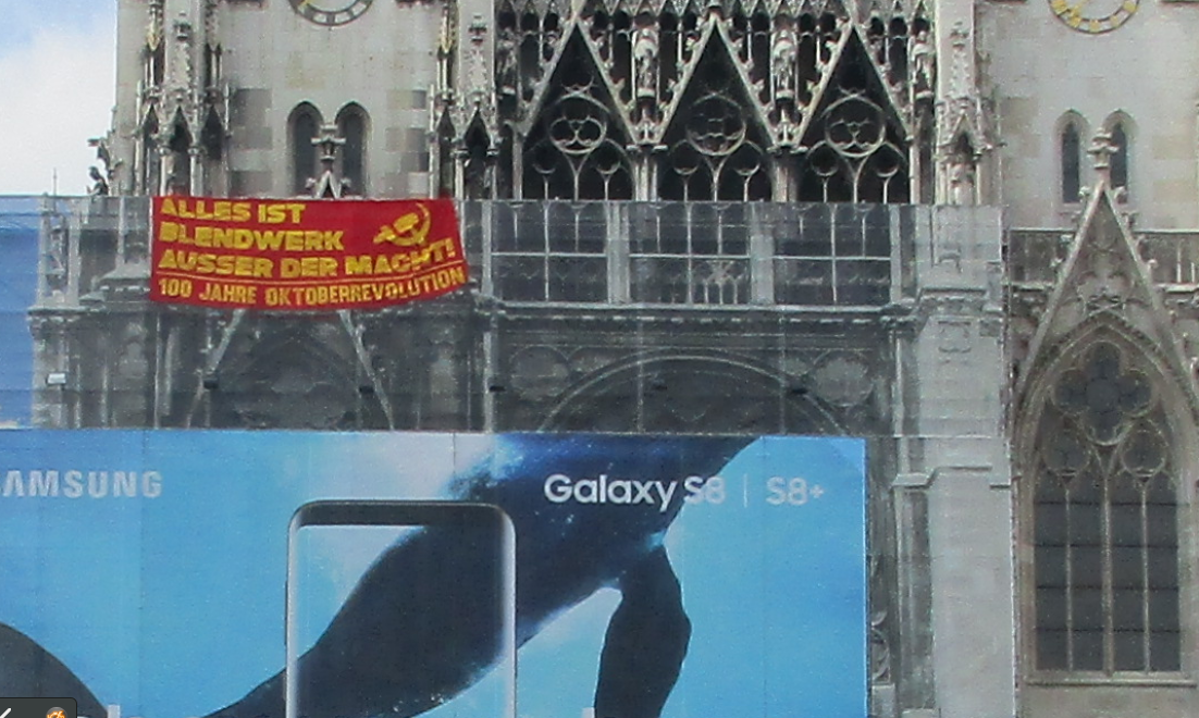 The 1st of may demonstration was hold under the sign of the 100. anniversary of the Great Socialist October Revolution. Many times this important occurrence was pointed out with slogans and sayings, and the slogan „Everything is deception, except of the power, trust in your own force!“ was actively shouted. A brochure which got spread at the demonstration, which contains the most important declarations and texts of the last years from the International Communist Movement, showed the the coming year will also be a year of deepen ideological struggles.