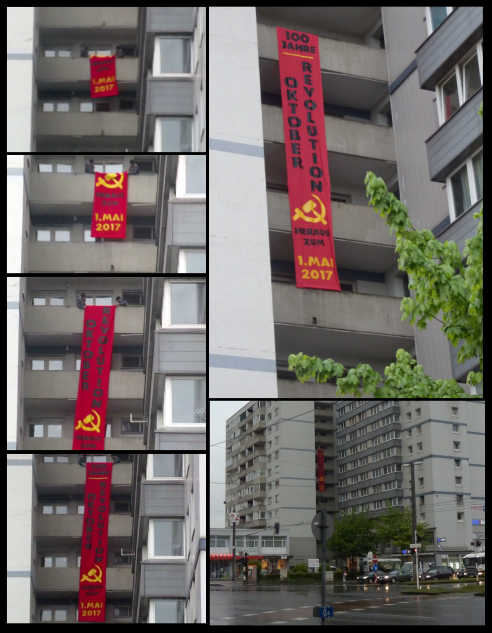 This year the 1st of May stood under the sign of the 100. anniversary of the Great Socialist October Revolution. In the weeks before the demonstration new activists could get activated under the slogans of proletarian internationalism and the October Revolution for the preparation of the 1st of may.
