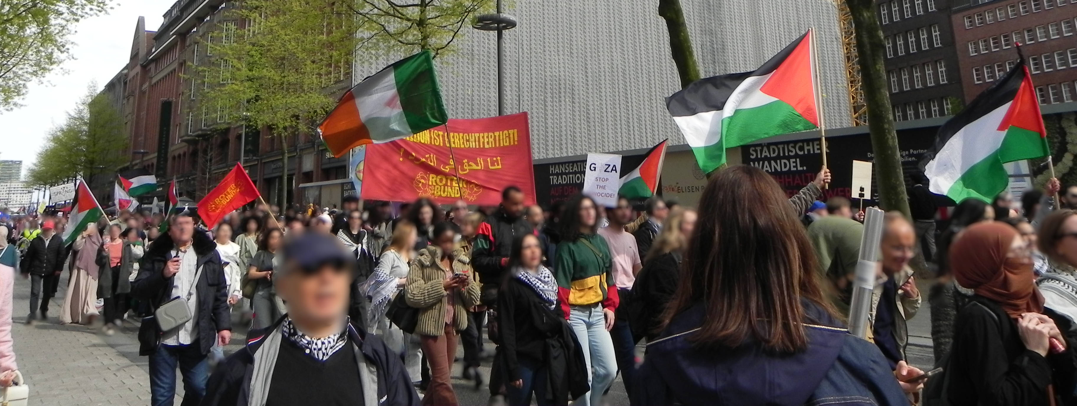 This Saturday, on the 27th of April a demonstration was held in Hamburg in solidarity with the Palestinian resistance in which about 3000 people took part. Former "Godfather" of Hamburg and todays federal gangster Olaf Scholz was at the same time in the city to kick off the European election campaign of his party, the SPD. Making a lot of noise the demonstration walked from the main train station in the direction of the "Fischmarkt", the place where Olaf Scholz and his Consorts were at that time.