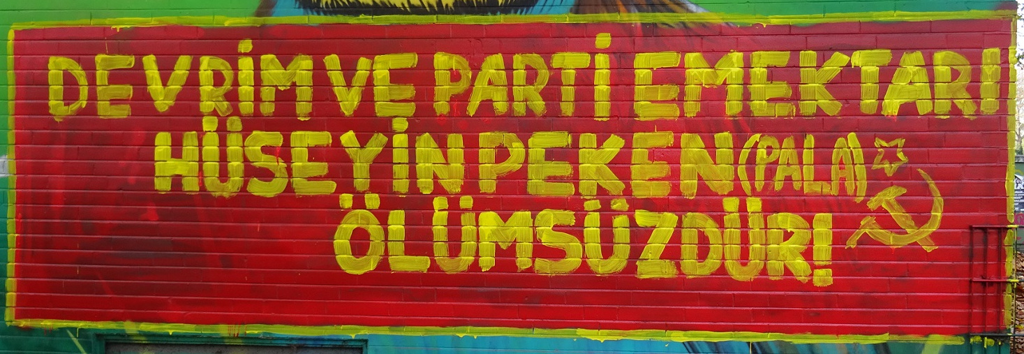 In the northern district of Essen, a working-class neighborhood characterized by migration and poverty on the outskirts of the city center, proletarian revolutionaries have carried out a mural painting with the slogan: "Devrim ve Parti Ekmetari Hüsyin Peken (Pala) Ölümsüzdür! in honor of Comrade Pala. The painting is on a soccer field, which is one of the busiest parts of the neighborhood.
