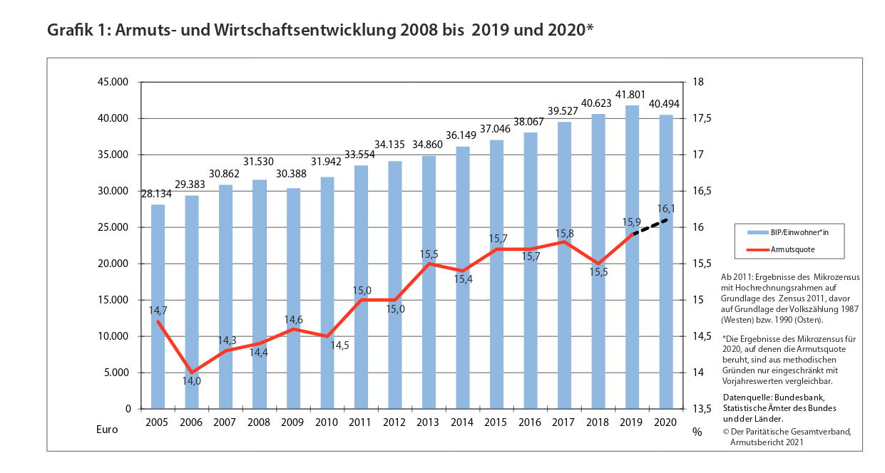 The Paritätische Wohlfahrtsverband also points out in its study that the poverty rate only increased so slightly because measures such as short-time work, the suspension of the obligation to report insolvencies, etc. were enacted. This shows above all that although the state was able to cushion the crisis with these measures, the crisis did not go away. That is the purpose of short-time work and other measures - to postpone the crisis and buy time. The big mass layoffs and thus a new wave of poverty are still to come and yet the trend of pauperisation of the people continued last year.