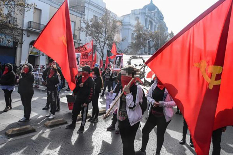 The Repression forces began their attacks on the demonstration with gas bombs and water jets at around noon, being promptly answered by the masses who hurled stones. Numerous burning barricades were erected along the streets of the Chilean capital and banks were also attacked by justified popular revolt. The manifestation of the Classist Workers Central was organized in opposition to the march of the CUT (Workers Single Central). In the streets, graffiti made by protesters with statements like The CUT does not defend you, denounced the role of class reconciliation that the entity has been playing.