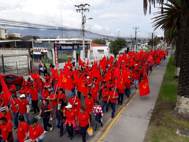 A big mass of workers, young people, students and women of the people dyed the streets red. The columns carried banners with the sickle and hammer, emblem of the Communist Party and the proletariat. In addition to celebrating the Day of Proletarian Internationalism, activists and masses repudiated the repression and militarization unleashed in the province of Esmeraldas, the precariousness of work, against unemployment and the government of the reactionary Lenin Moreno, in addition to claiming better wages.