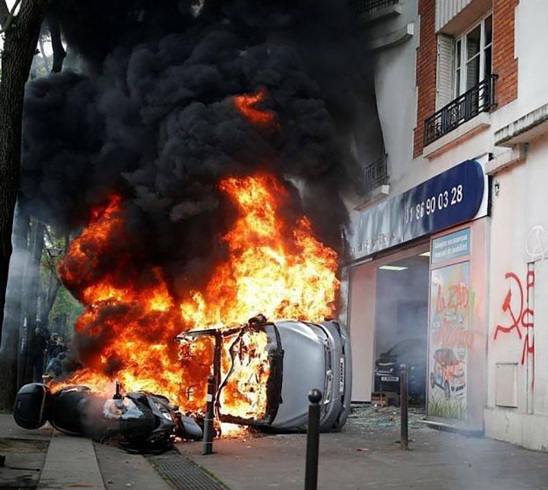 Government facilities were also set on fire as a way to repudiate the policies of reactionary President Emmanuel Macron. French protesters repudiate Macron's attempt to approve anti-people and anti-worker reforms, such as labor and social security, as well as other notorious ones such as educational reform.