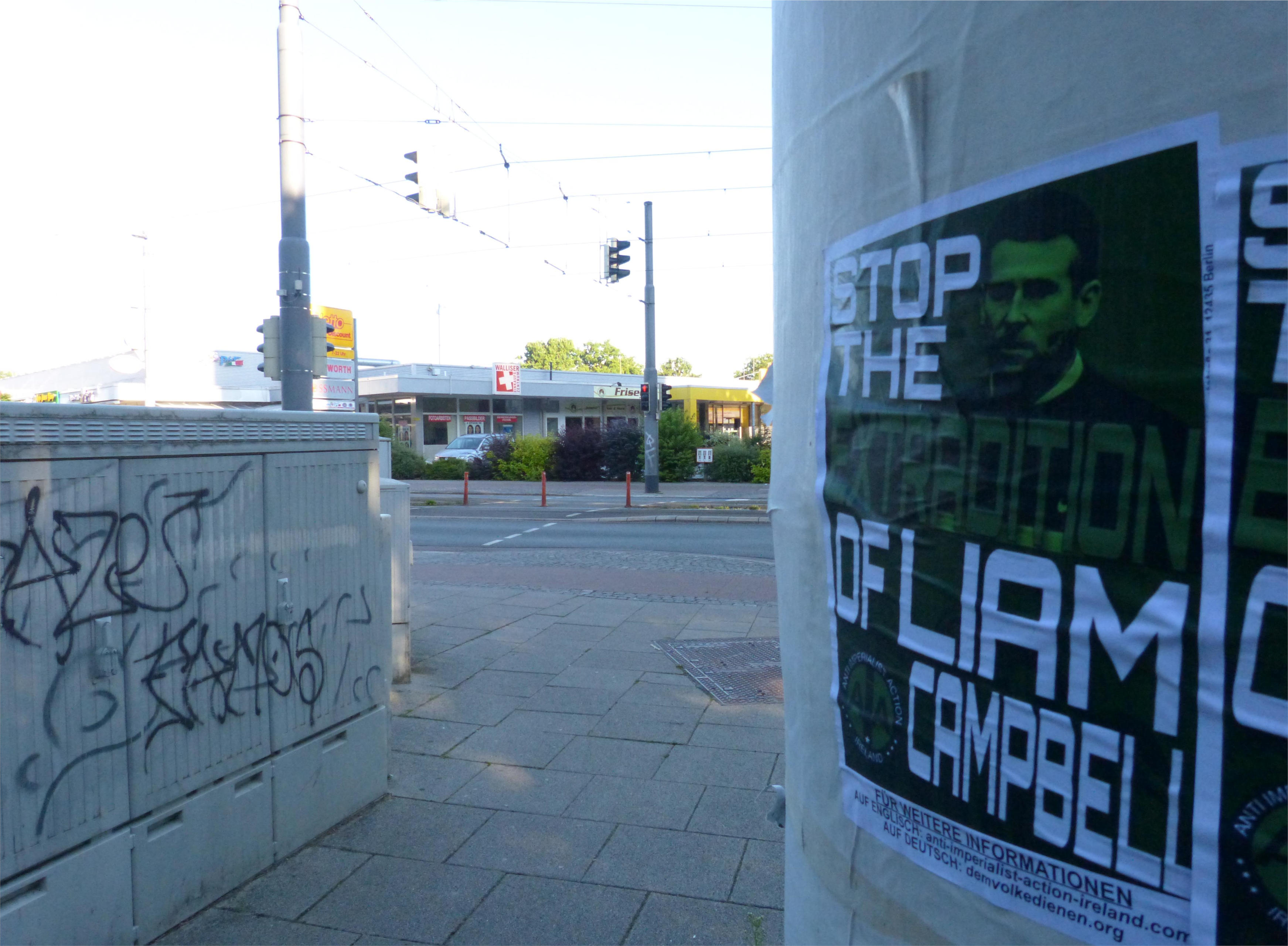 In the workers area of Tenever in Bremen posters against the against the Extradition of Liam Campbell were spotted.
